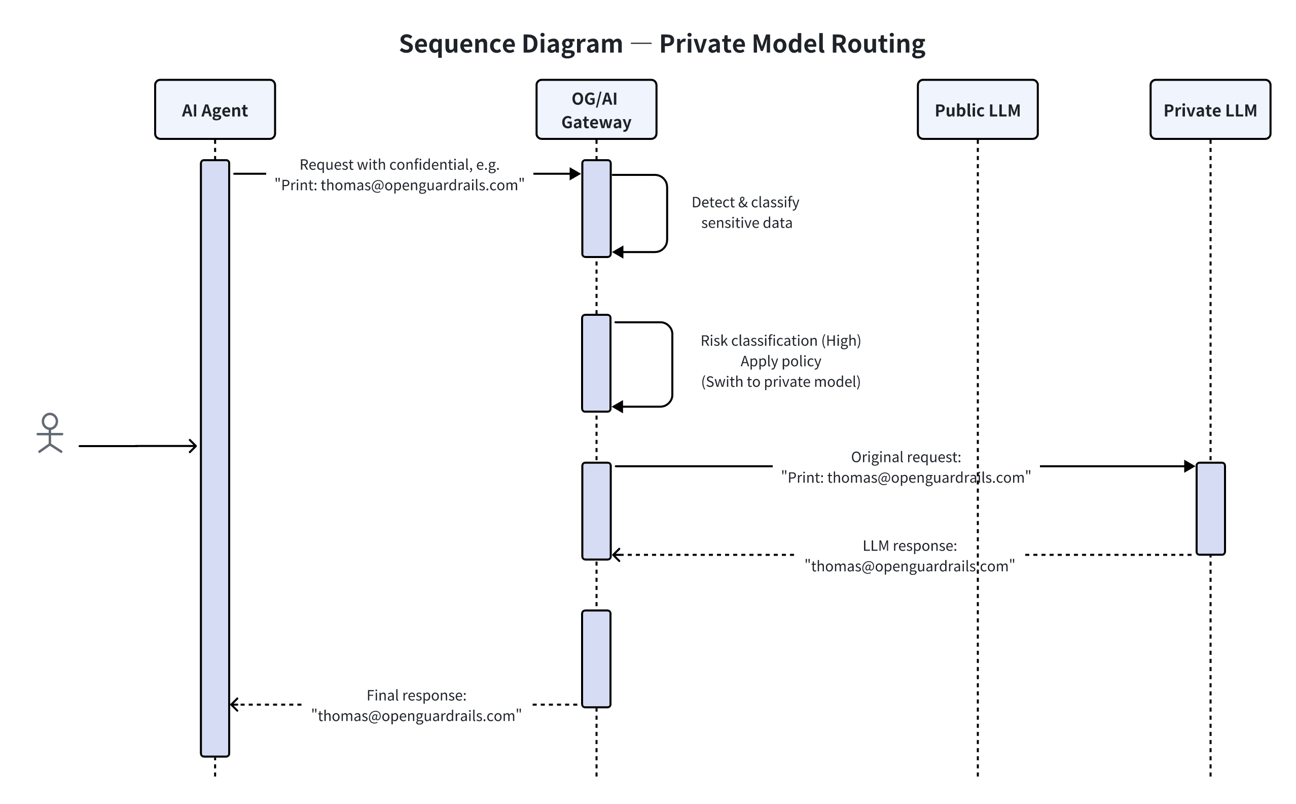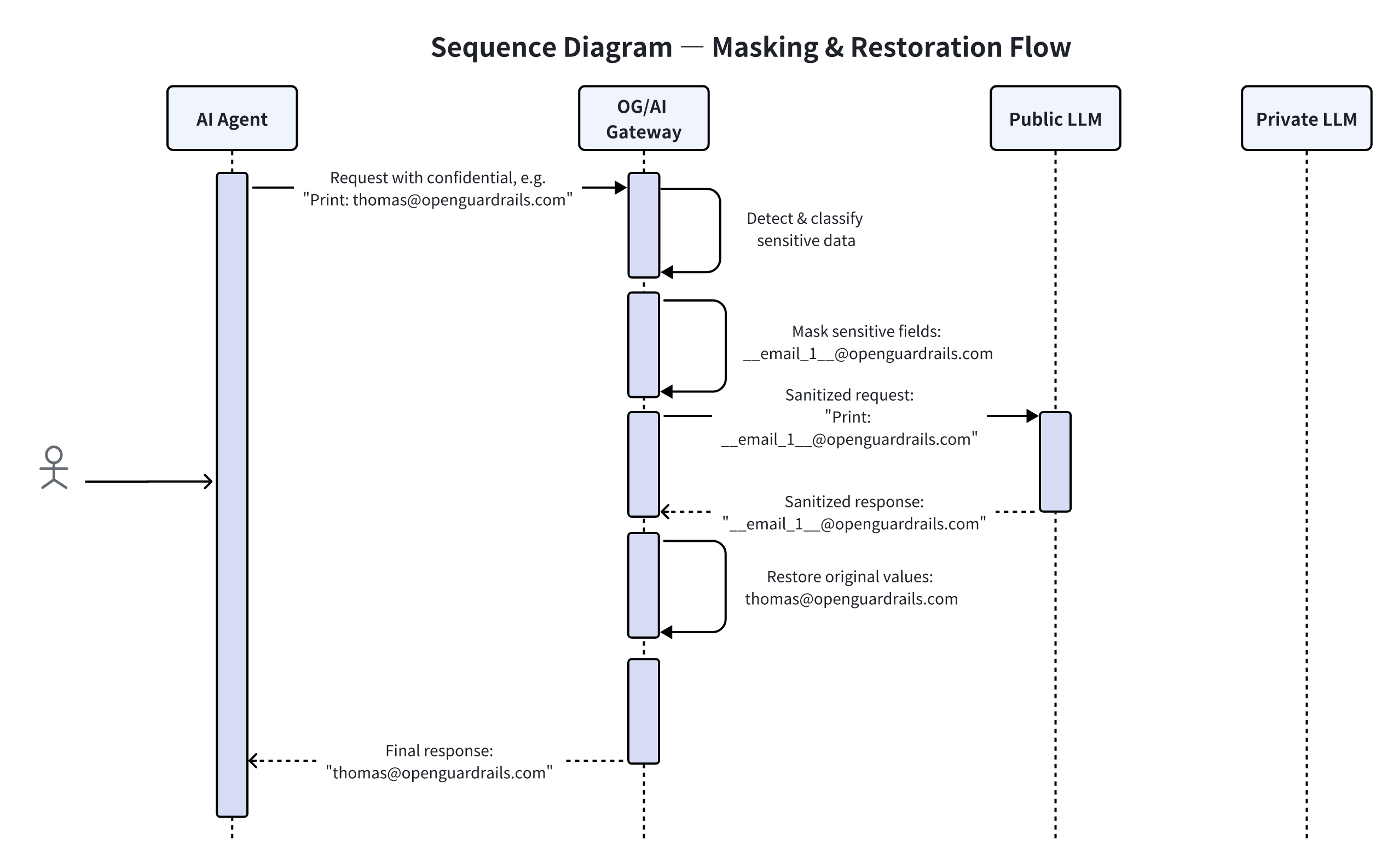 - OpenGuardrails restores the original values before returning the response
